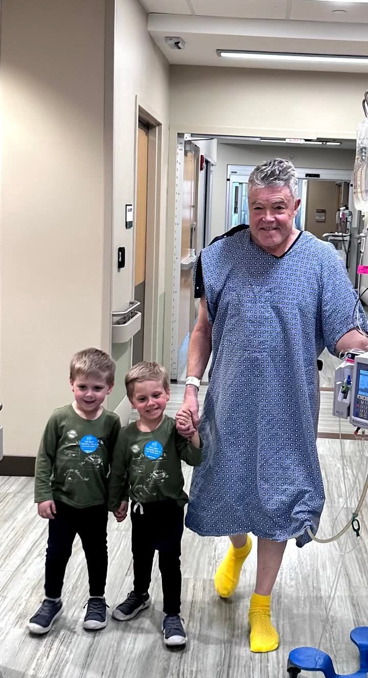Surgery was on March 7, I was up and walking March 8. My daughter and twin grandsons were among a steady stream of visitors, many joined me for laps around the hospital floor, accompanied by my handy IV pole and new stylish attachment of an ileostomy pouch. The latter took some getting used to, with more than my share of embarrassing moments. By day ten, I was back on solid foods, learning to handle the ‘changing of the bag,’ and ready for discharge on March 17, 2025.